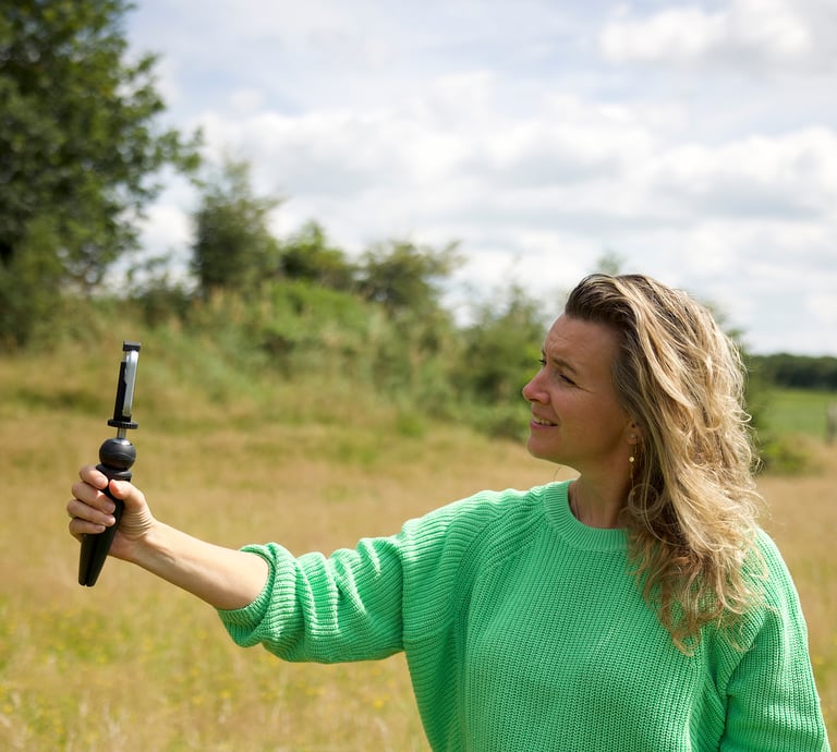 Leer stap voor stap hoe je met vertrouwen én vrijheid voor de camera kunt spreken, een helder verhaal vertelt en goed in beeld komt. Ik laat je zien hoe je jouw eigenheid inzet. Wanneer je dat helder hebt, wordt jezelf filmen véél relaxter.